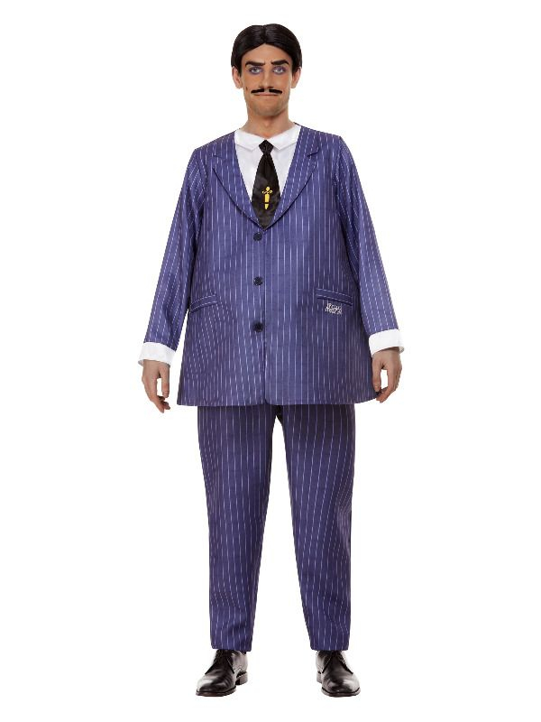 Wie kent ze nou niet de Addams Family, Verkleed je al Gomez Addams in dit geweldige paarse kostuum bestaande uit de top, broek, snor en pruik. Je bent met dit kostuum in ƩƩn klap klaar voor Carnaval of Themafeestje, Bekijk hier onze gehele collectie van de Addams Family.