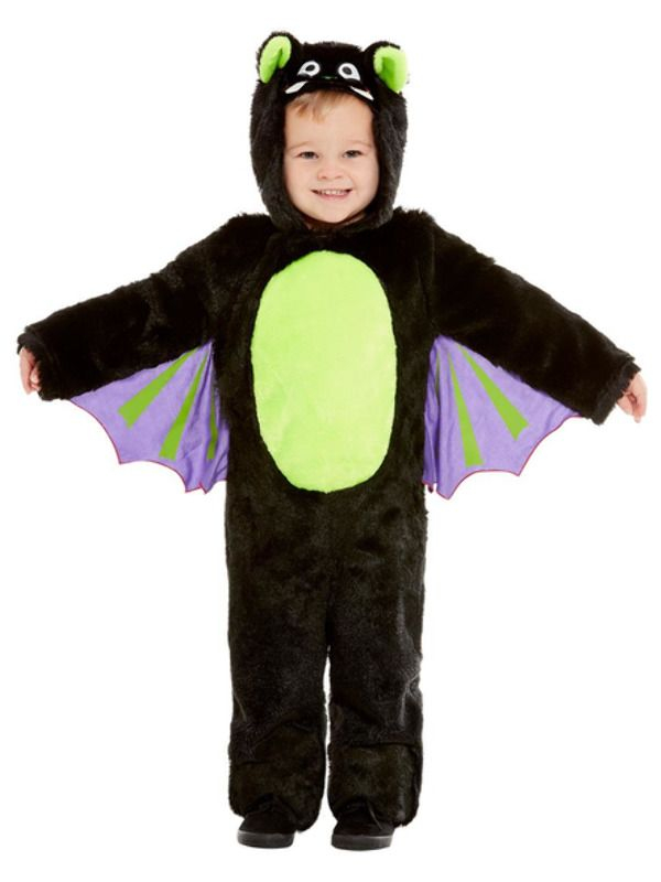 Voor de allerkleinste dit te gekke Vleermuis Kostuum, bestaande uit de zwarte hooded Onesie met vleugels.