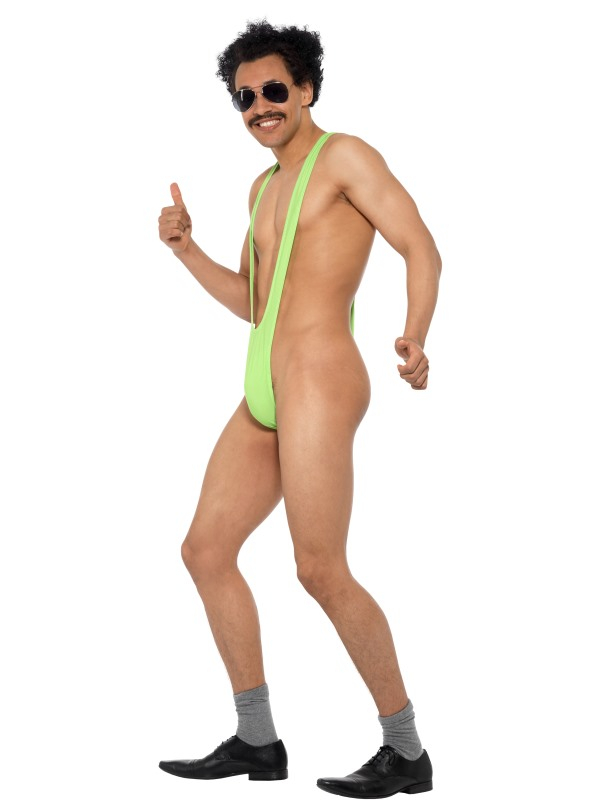 De ontzettende leuke Borat mankini, in de kleur lime groen. Leuk voor carnaval of een vrijgezellenfeestje. One size model (M/L)