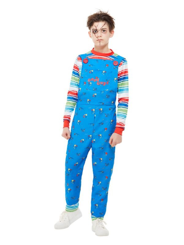 Jaag iedereen de stuipen op het lijf met dit enge Chucky Kostuum voor jongens, bestaande uit het blauwe tuinpak met gestreepte top. Maak de look compleet met onze Chucky Kit.Ā Wij verkopen het Chucky Kostuum voor het gehele gezin.