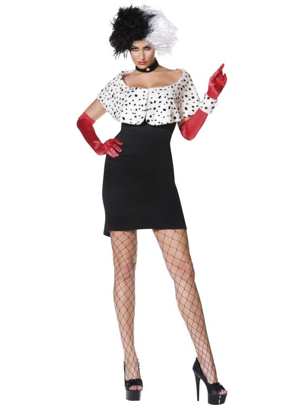 Cruella De Vil Dames Kostuum. Inbegrepen is de strakke jurk, de witte stola met zwarte stippen en de rode handschoenen. De pruik verkopen we los. Leuk kostuum voor film en tv themafeesten, sprookjes themafeesten of Carnaval.Ā
