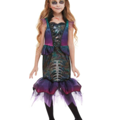 Dark Mermaid Kostuum, bestaande uit de multi-gekleurde jurk met haarband. Maak de look compleet met bijpassende schmink.