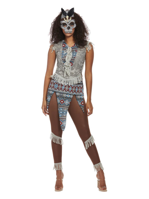 Dit prachtige Dark Spirit Warrior Dames Kostuum bestaat uit de Top, Broek & Masker. Maak het kostuum compleet met een pijl en boog en je bent klaar voor Carnaval of themafeest.