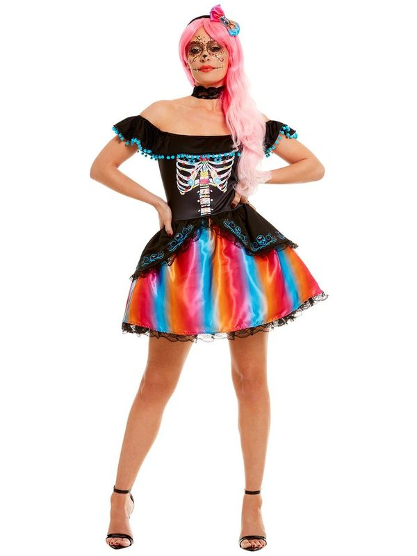 Day of the Dead Senorita Ombre Kostuum. bestaande uit de jurk met choker en haarband. Maak de look compleet met bijpassende accessoires zoals panty/hold-up kousen, schmink en pruik. Bekijk hier onze gehele Day of the Dead CollectieĀ en kies een Halloween outfit die bij jou past.