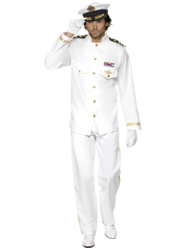 4-delig Deluxe Kapiteinspak Verkleedkleding. Inbegrepen is het mooie jasje met schouderpads, de witte broek, de pet en de handschoenen.Ā