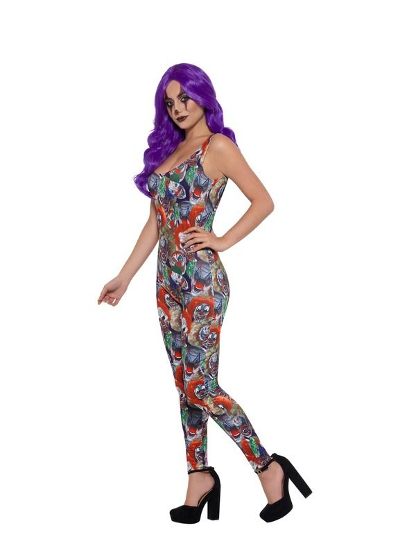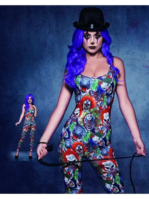 Fever Creepy Clown Kostuum, bestaande uit de Multi-Gekleurde bodysuit, combineer dit kostuum met de zweep, hoedje, schmink en pruik en je bent klaar voor jouw Halloween Party.