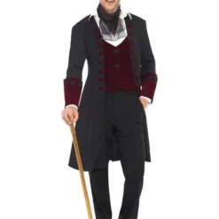 Fever Gothic Vampire Vampieren Kostuum Heren Halloween Kostuum. Inbegrepen is de zwarte jas, de spencer en de cravate. Draag het met een zwarte broek en je outfit is compleet. We verkopen vampieren schmink en tanden los.
