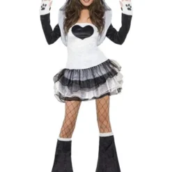Fever Sexy Panda Dames Verkleedkostuum. Mooi zwart/ witte jurk met volle petticoat rok, mooie jasje met muts en oren en beenstukken. Top kwaliteit kostuum. We verkopen nog veel meer sexy crazy animals verkleedkleding.