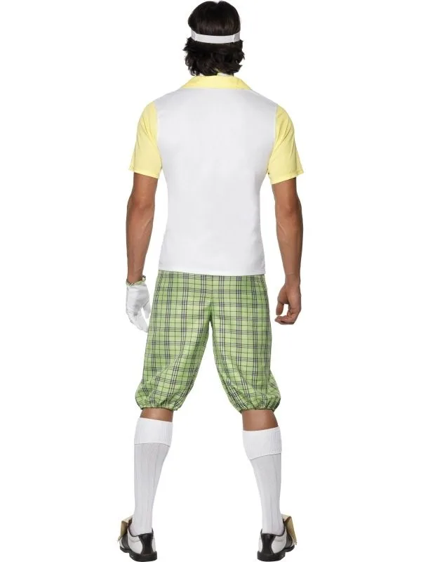 Golf Heren Verkleedkleding. Inbegrepen is het golf shirt, de korte broek, de vlinderstrik, de handschoen en de zonneklep.Ā