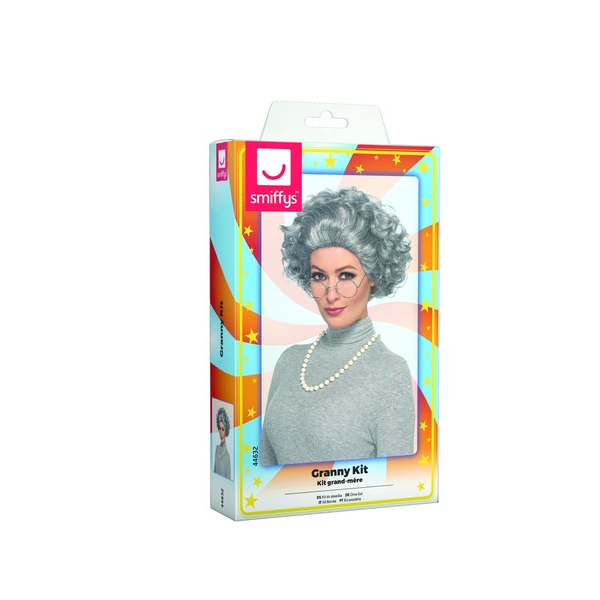 Verander jezelf in een handomdraai tot een echte Oma met deze Granny Kit, bestaande uit een grijze pruik, bril en parelketting.