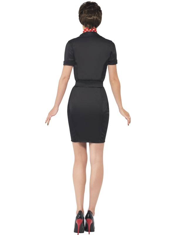 Grease Rizzo Dames Verkleedkostuum. Dit is het echt gelicenseerde Grease Rizzo Verkleedpakje. Inbegrepen is de zwarte strakke jurk met naambordje, de riem en de rode sjaal met witte stoppen. We verkopen de pruik los. Leuk voor Carnaval, themafeesten famous people, film en tv sterren en nog veel meer themafeesten. We verkopen ook all ander karakters van Grease.Ā