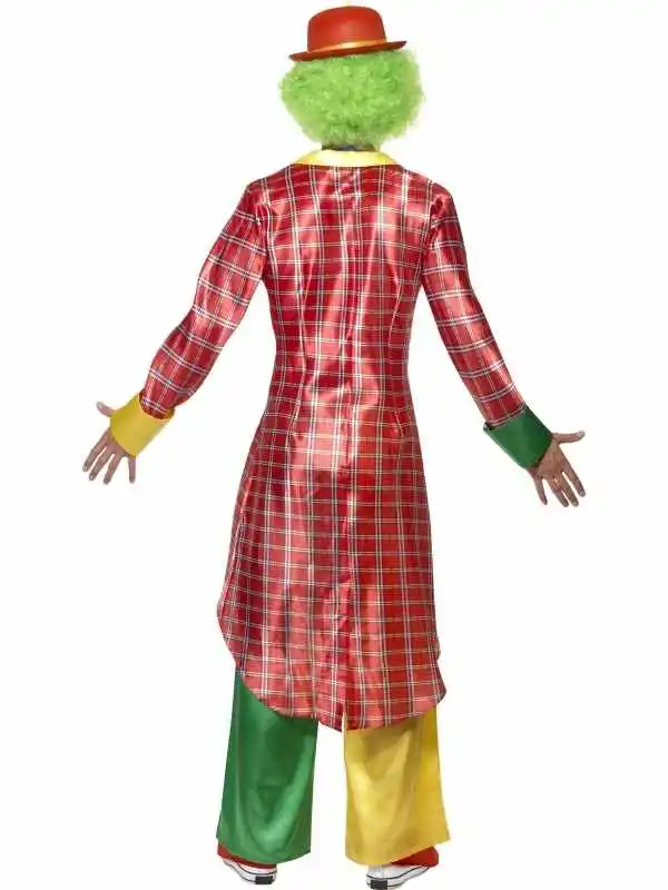 La Circus Deluxe Clown Herenkostuum met broek, shirt en jas, strik en schoenhoezen. De pruik en de schmink verkopen wij los in onze webwinkel.