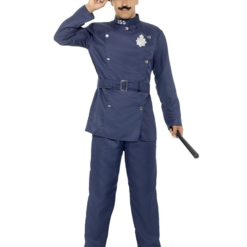 Ā London Bobby Politie Kostuum, bestaande uit het blauwe pak met riem en hoed. Maak de look af met bijpassende accessoires die hieronder staan.
