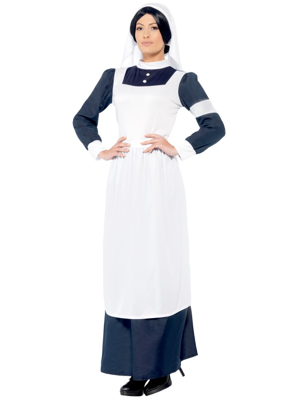 Verpleegster kostuum van voor de oorlog. Met de jurk en het verpleegstershoedje.Ā