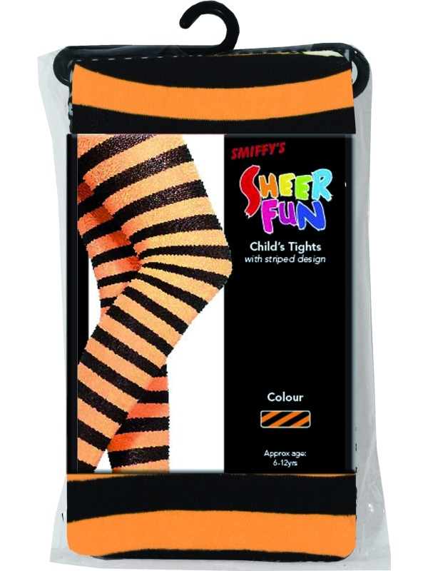Oranje – zwart gestreepte panty behorende bij het kostuum:Ā Schattig Pompoen Fairy Peuter Halloween Kostuum.