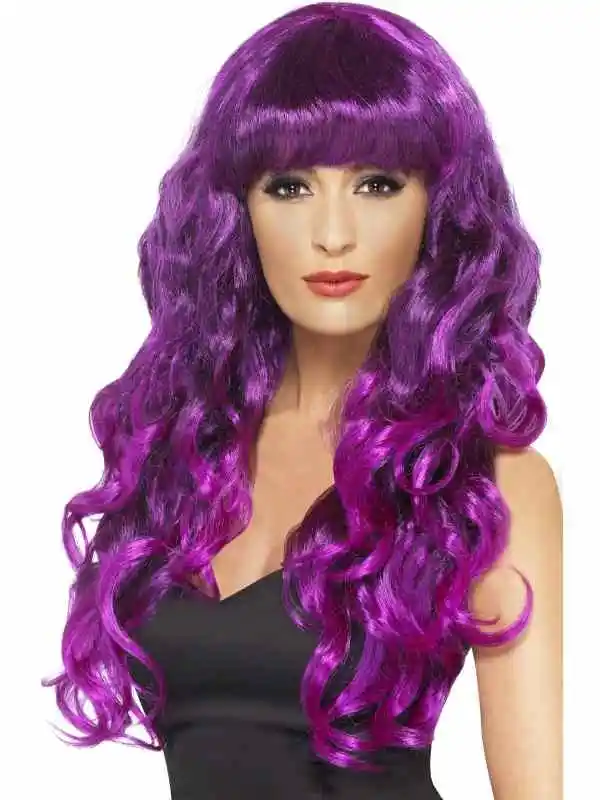 Paarse Siren Pruik: mooie volle lange pruik met mooie pony en krullen. Deze pruik is verkrijgbaar in diverse kleuren.
