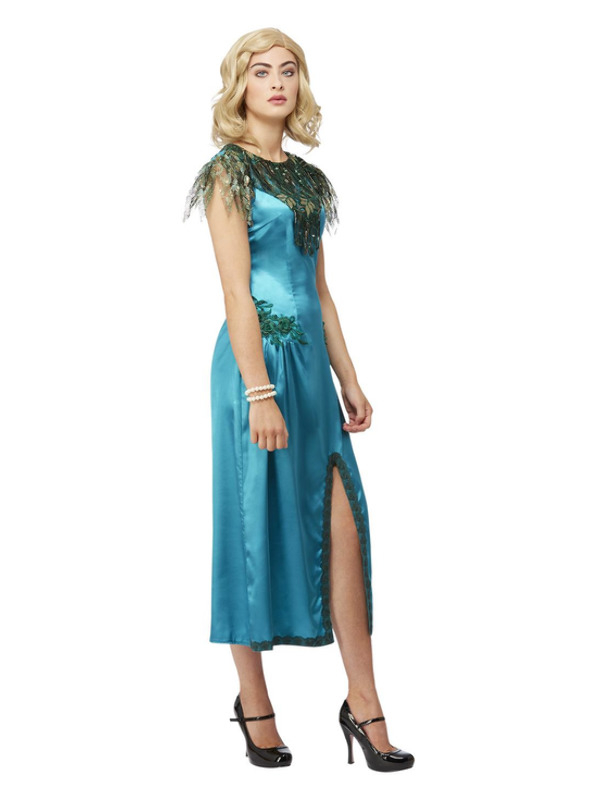Ga terug naar de jaren 20 in Birmingham met deze prachtige Grace Shelby jurk van de bekende netflix serie Peaky Blinders. Deze jukr is perfect voor een jaren twintig partij. De jurk is versierd met mooie groene details en een split. Combineer de jurk met bijpassende accessoires voor een complete look.