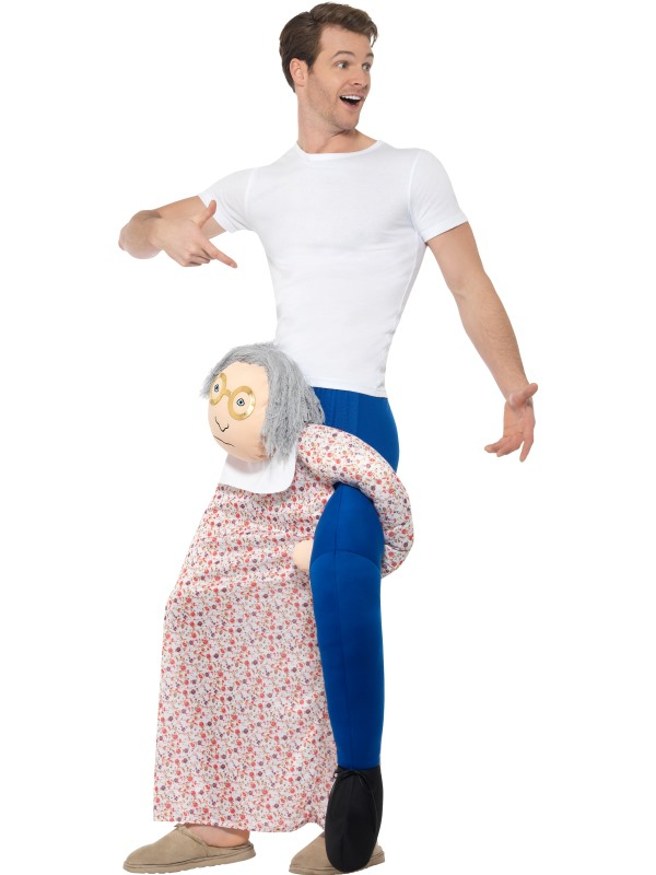Op de rug van Oma dansend door de menigte, met dit te gekke Piggy Grandma kostuum ben jij het middelpunt van elk feest.