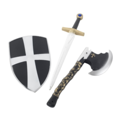 3 Piece Crusader Set, bestaande uit het schild, zwaard en bijl. Ook verkrijgbaar in Rood/Wit.