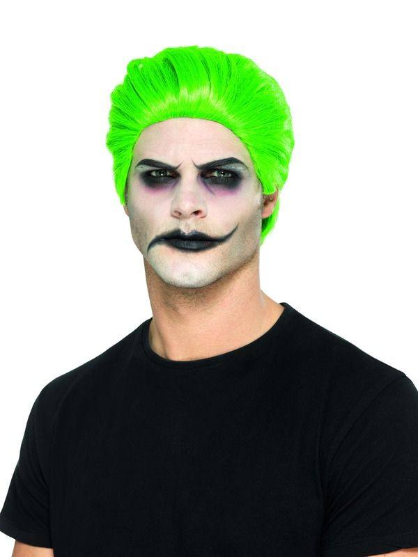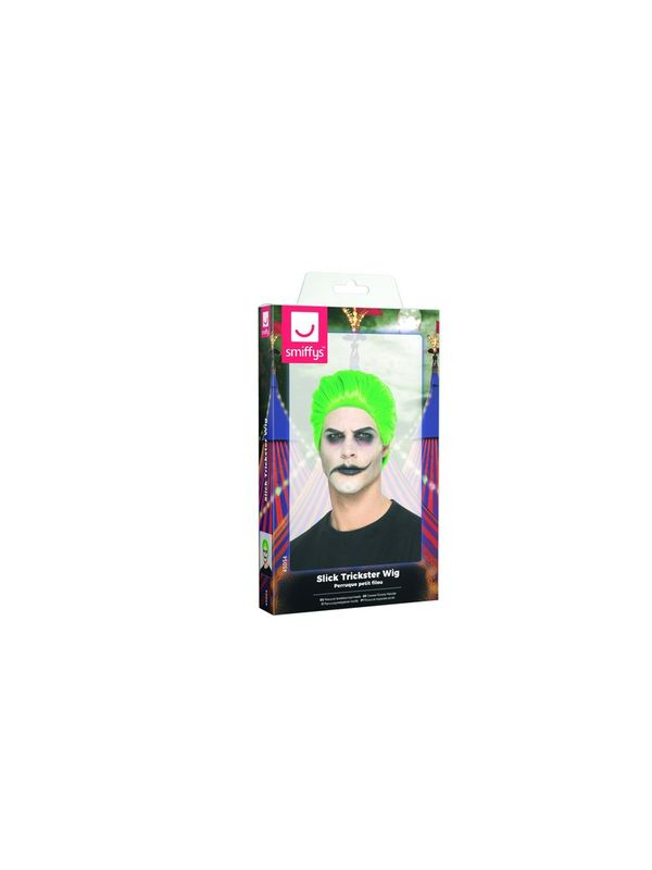 Ben jij fan van superhelden kruip dan tijdens Halloween in de huid van The Joker met deze Neon groene Slick Trickster Pruik.