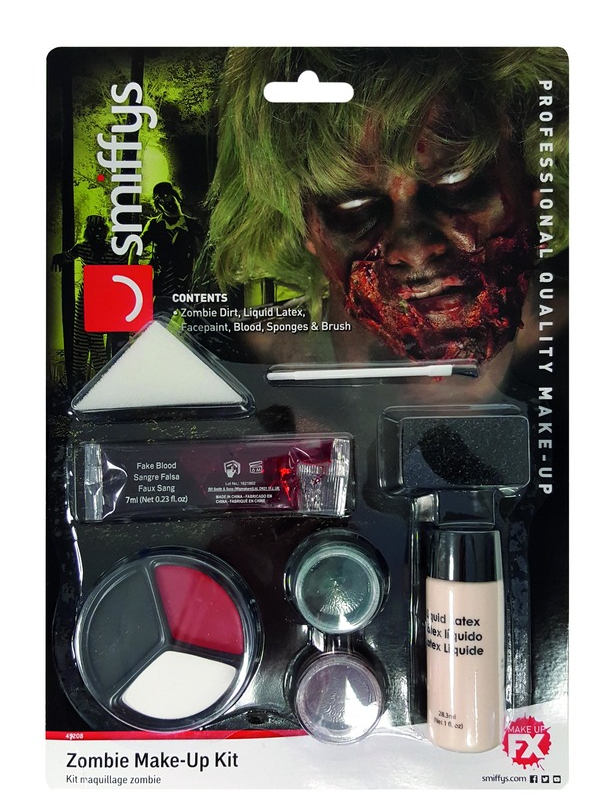 Zombie make-up kit met vloeibare latex, zombie dirt, schmink, bloed en instructies. Uw enge horror zombie look is in mum van tijd gemaakt.Ā